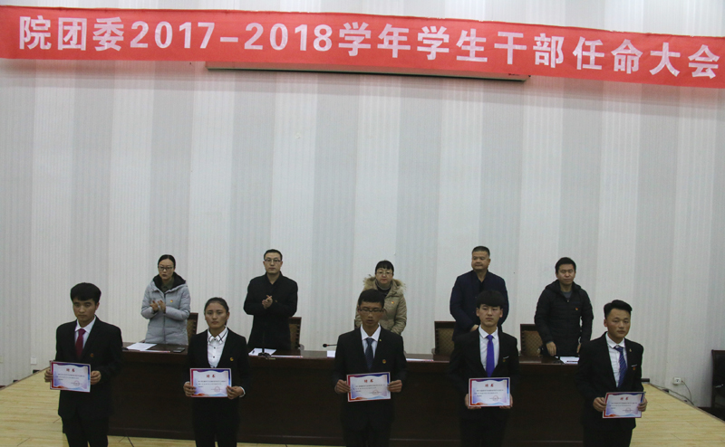 會上,院團(tuán)委宣讀了《關(guān)于2017-2018學(xué)年武威職業(yè)學(xué)院學(xué)生會干部任職的決定》《關(guān)于共青團(tuán)武威職業(yè)學(xué)院委員會學(xué)生助理任職的決定》《關(guān)于武威職業(yè)學(xué)院第十一屆學(xué)生社團(tuán)聯(lián)合會學(xué)生干部任職的決定》,為學(xué)生干部代表頒發(fā)了聘書。