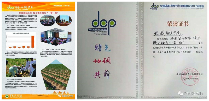 為了進(jìn)一步推進(jìn)優(yōu)質(zhì)高職院校設(shè)施農(nóng)業(yè)與裝備專業(yè)項(xiàng)目組的建設(shè)進(jìn)程,我系積極組織教師學(xué)習(xí)新的教育教學(xué)理念和教學(xué)方法,積極推行專業(yè)人才培養(yǎng)模式、教學(xué)方法、實(shí)踐教學(xué)等的改革。在11月全國(guó)高職高專校長(zhǎng)聯(lián)系會(huì)議教學(xué)成果展中,我系選送的“拓展國(guó)際合作,校企攜手服務(wù)‘一帶一路’”教學(xué)成果案例當(dāng)選為全國(guó)教學(xué)成果優(yōu)秀案例,該案例是甘肅省2017年全國(guó)高職高專校長(zhǎng)聯(lián)席會(huì)議教學(xué)成果展中唯一獲獎(jiǎng)的案例,是我系扎實(shí)推進(jìn)優(yōu)質(zhì)高職院校建設(shè)的重大成果。
