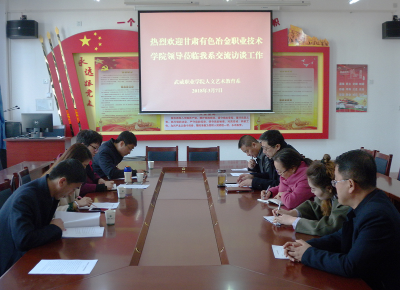 3月7日上午,甘肅有色冶金職業(yè)技術(shù)學(xué)院教育系負(fù)責(zé)人妙學(xué)春一行4人到我系進(jìn)行交流學(xué)習(xí),系黨總支書記胡靜峰、各教研室主任參加了會(huì)議。