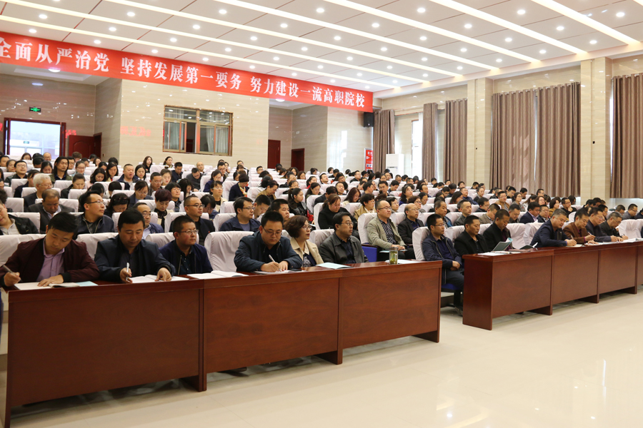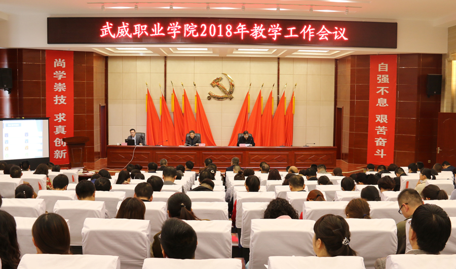 黨委副書記趙明對學(xué)院2017年教學(xué)工作做了簡要回顧與總結(jié),結(jié)合全國全省教育工作會議精神,深入分析了學(xué)院目前面臨的困難與存在的問題,從八個方面對2018年學(xué)院教學(xué)重點(diǎn)工作做了安排部署。一是加強(qiáng)思想政治建設(shè),貫徹落實(shí)中央決策部署。學(xué)習(xí)貫徹習(xí)近平新時代中國特色社會主義思想和黨的十九大精神,貫徹落實(shí)全國教育大會精神,細(xì)化落實(shí)職業(yè)教育具體工作措施。二是深化改革,增強(qiáng)辦學(xué)活力。堅(jiān)持依法治校,繼續(xù)完善內(nèi)部治理體系,加強(qiáng)學(xué)術(shù)委員會、職稱評審委員會建設(shè),健全管理體系和運(yùn)行機(jī)制,大力推進(jìn)人才培養(yǎng)模式改革和招生考試制度改革。三是強(qiáng)化內(nèi)涵,全力推進(jìn)優(yōu)質(zhì)高職院校建設(shè)。抓實(shí)推進(jìn)優(yōu)質(zhì)高職院校6個模塊19個項(xiàng)目94項(xiàng)任務(wù)312條子任務(wù)的建設(shè)工作,加強(qiáng)內(nèi)部協(xié)調(diào),全力推進(jìn)。加強(qiáng)專業(yè)內(nèi)涵建設(shè)和實(shí)踐教學(xué)內(nèi)涵建設(shè),建立一批優(yōu)質(zhì)特色專業(yè)和一批高水平生產(chǎn)性實(shí)訓(xùn)基地;積極開展創(chuàng)新創(chuàng)業(yè)教育實(shí)踐活動,加大社會培訓(xùn)力度,積極探索開展國際合作與交流;加強(qiáng)智慧校園和校園文化建設(shè)。四是優(yōu)化結(jié)構(gòu),全力打造一批高水平優(yōu)質(zhì)特色專業(yè)。利用直屬附屬醫(yī)院、校辦企業(yè)武威泰豐新能源有限責(zé)任、甘肅(武威)國際陸港和武威保稅物流中心等優(yōu)勢,加快重點(diǎn)專業(yè)建設(shè)力度,打造3~5個國家級高水平優(yōu)質(zhì)特色專業(yè)。五是合作培養(yǎng),著力打造專兼結(jié)合的高水平教師隊(duì)伍。大力實(shí)施教師素質(zhì)提升工程,完善同濟(jì)大學(xué)編制的《武威職業(yè)學(xué)院師資能力提升培訓(xùn)方案》,落實(shí)西安交通大學(xué)、天津職業(yè)大學(xué)簽訂的合作協(xié)議,推進(jìn)教師教學(xué)發(fā)展中心建設(shè)與運(yùn)行,強(qiáng)化專業(yè)帶頭人、新進(jìn)教師、骨干教師、優(yōu)秀青年教師的培養(yǎng)力度。六是育人為本,關(guān)注學(xué)生成長成才。優(yōu)化育人環(huán)境,開足開好思想政治類、人文素養(yǎng)提升類課程,開展校內(nèi)職業(yè)技能競賽,鼓勵支持參加省級以上比賽,培養(yǎng)學(xué)生能力。七是深化產(chǎn)教融合,提升社會服務(wù)水平。充分發(fā)揮職業(yè)教育集團(tuán)作用,深化“職業(yè)教育+產(chǎn)業(yè)園區(qū)+生產(chǎn)基地”的校企合作模式;提升校辦企業(yè)、直屬附屬醫(yī)院的教學(xué)服務(wù)功能;各專業(yè)要拓展產(chǎn)教融合渠道,精準(zhǔn)施策,服務(wù)國家戰(zhàn)略。八是完善質(zhì)量保障機(jī)制,提升人才培養(yǎng)質(zhì)量。編制并逐步推行教學(xué)工作診斷與改進(jìn)方案,學(xué)習(xí)實(shí)施精細(xì)化管理模式,加大教學(xué)督查力度,規(guī)范教學(xué)秩序,提高教育教學(xué)管理水平。