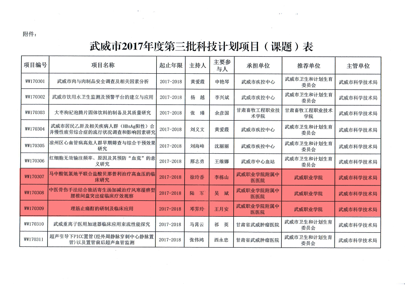轉(zhuǎn)發(fā)武威市科學(xué)技術(shù)局關(guān)于下達(dá)武威市2017年度第三批市列科技計(jì)劃項(xiàng)目的通知