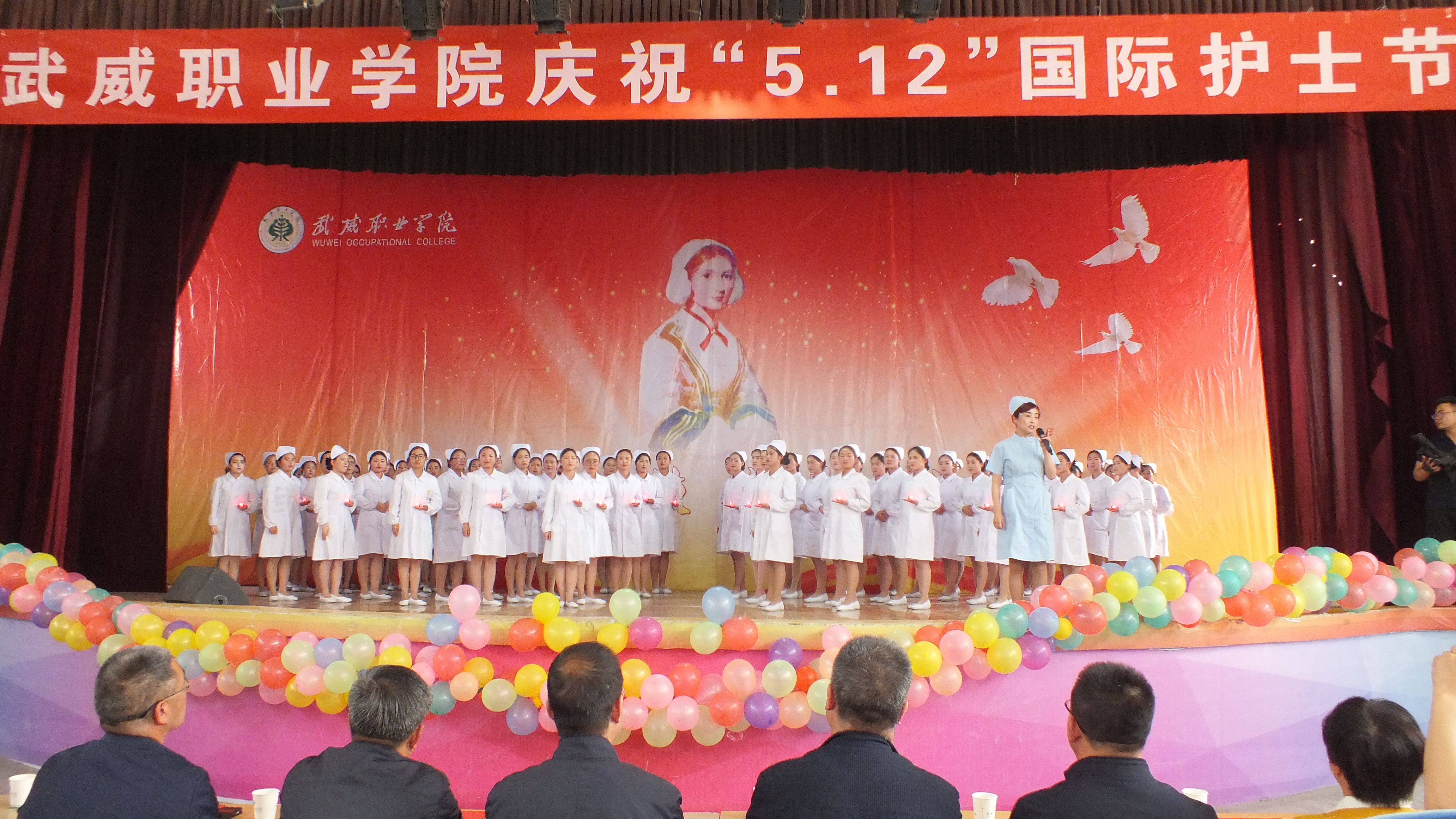 為了繼承和弘揚南丁格爾精神,展示護理系師生良好精神風(fēng)貌和職業(yè)風(fēng)范,5.11日下午學(xué)院在大禮堂舉辦了“5.12”國際護士節(jié)慶?;顒?,學(xué)院黨委副書記趙明、副院長翟存祥以及宣傳統(tǒng)戰(zhàn)部、學(xué)生工作處、教務(wù)處、院團委、藥學(xué)系、醫(yī)技系領(lǐng)導(dǎo)及護理系全體師生1200余人參與了本次活動。