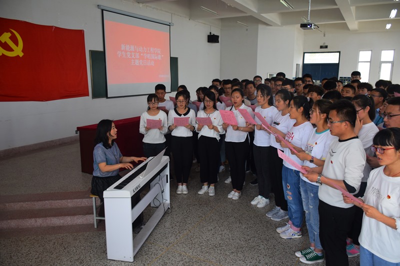 為更好地激發(fā)學生黨員的愛黨、愛國熱情,增強黨性,增強組織生活的儀式感和嚴肅性,新能源與動力工程學院學生黨支部于5月31日下午在明德樓001教室舉辦“重溫國歌,學唱國際歌”主題黨日活動。本次活動邀請人文藝術教育系王小娟老師做藝術教學指導。