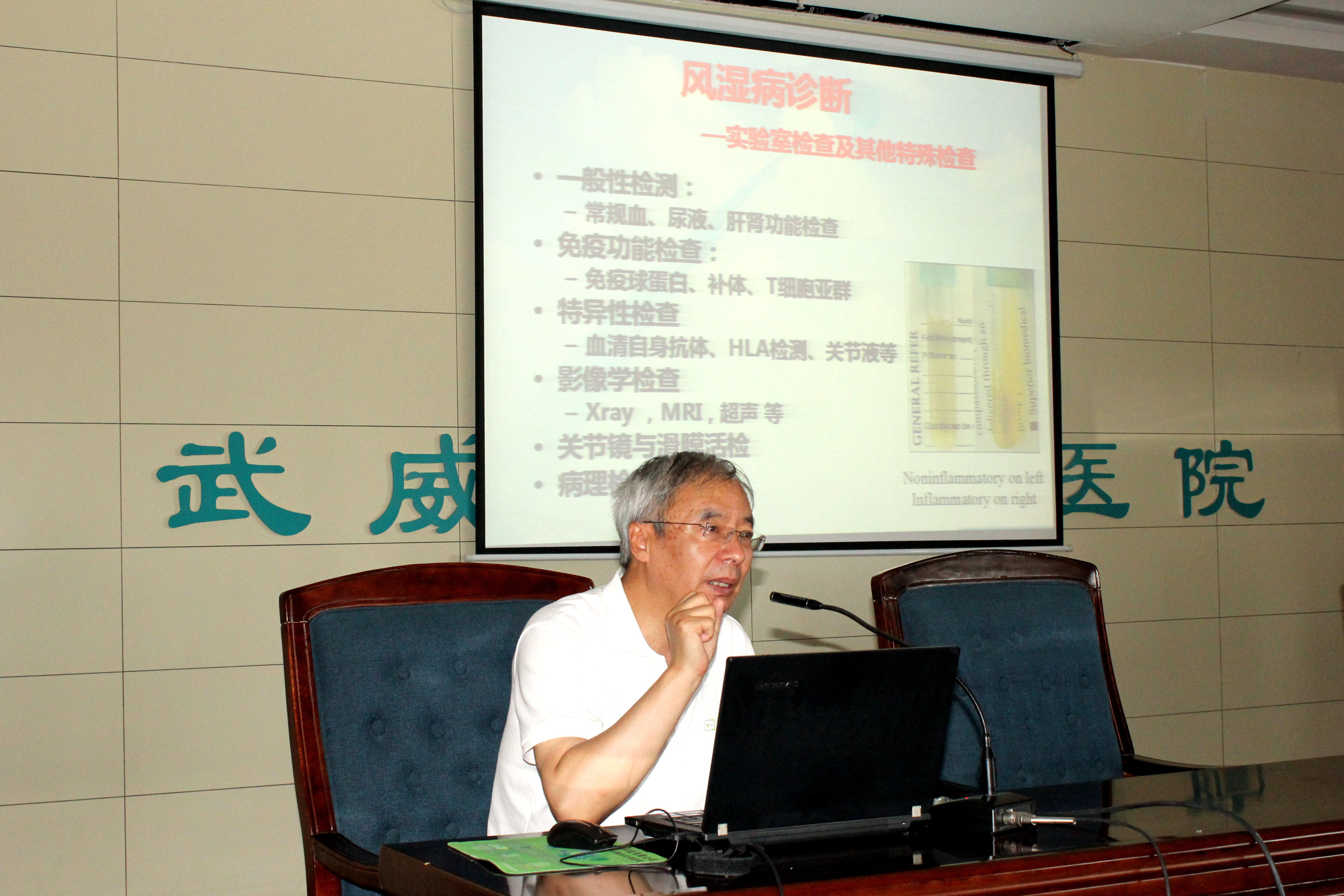 為提高醫(yī)務人員診治風濕病的技術(shù)水平,學院直屬附屬醫(yī)院于6月29日下午,在內(nèi)科七樓會議室舉辦風濕病診治學術(shù)報告會。醫(yī)院邀請?zhí)m大二院著名風濕病專家王軼作“風濕免疫實驗室檢查”為題的學術(shù)報告,副院長張仁德主持會議,醫(yī)院各科室百余名醫(yī)療骨干參加學術(shù)會議聆聽報告。