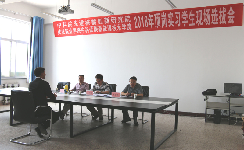 2018年6月21日,中國(guó)科學(xué)院先進(jìn)核能創(chuàng)新研究院在學(xué)院舉行了2018年頂崗實(shí)習(xí)學(xué)生現(xiàn)場(chǎng)選撥會(huì),由中科院先進(jìn)核能創(chuàng)新研究院綜合管理部常務(wù)副主任王納秀、熔鹽機(jī)械部熱工組組長(zhǎng)王曉和中科武威新能源研究所所長(zhǎng)朱智勇組成的專家組對(duì)能源類專業(yè)和機(jī)械類專業(yè)學(xué)生進(jìn)行了現(xiàn)場(chǎng)面試,遴選出的14名同學(xué)將于7月份前往中國(guó)科學(xué)院先進(jìn)核能創(chuàng)新研究院進(jìn)行為期一年的專業(yè)頂崗實(shí)習(xí),他們將在中科院先進(jìn)核能創(chuàng)新研究院專家教授的帶領(lǐng)下,通過一對(duì)一指導(dǎo)和崗位輪訓(xùn)等形式全面系統(tǒng)完成頂崗實(shí)習(xí),了解行業(yè)技術(shù)需求和技術(shù)最新進(jìn)展,掌握更多的專業(yè)知識(shí)和實(shí)踐技能,感受頂級(jí)科研院所深厚的科技氛圍和文化氛圍,全面提升專業(yè)水平和綜合素養(yǎng),為成功走向社會(huì)奠定良好的基礎(chǔ)。
