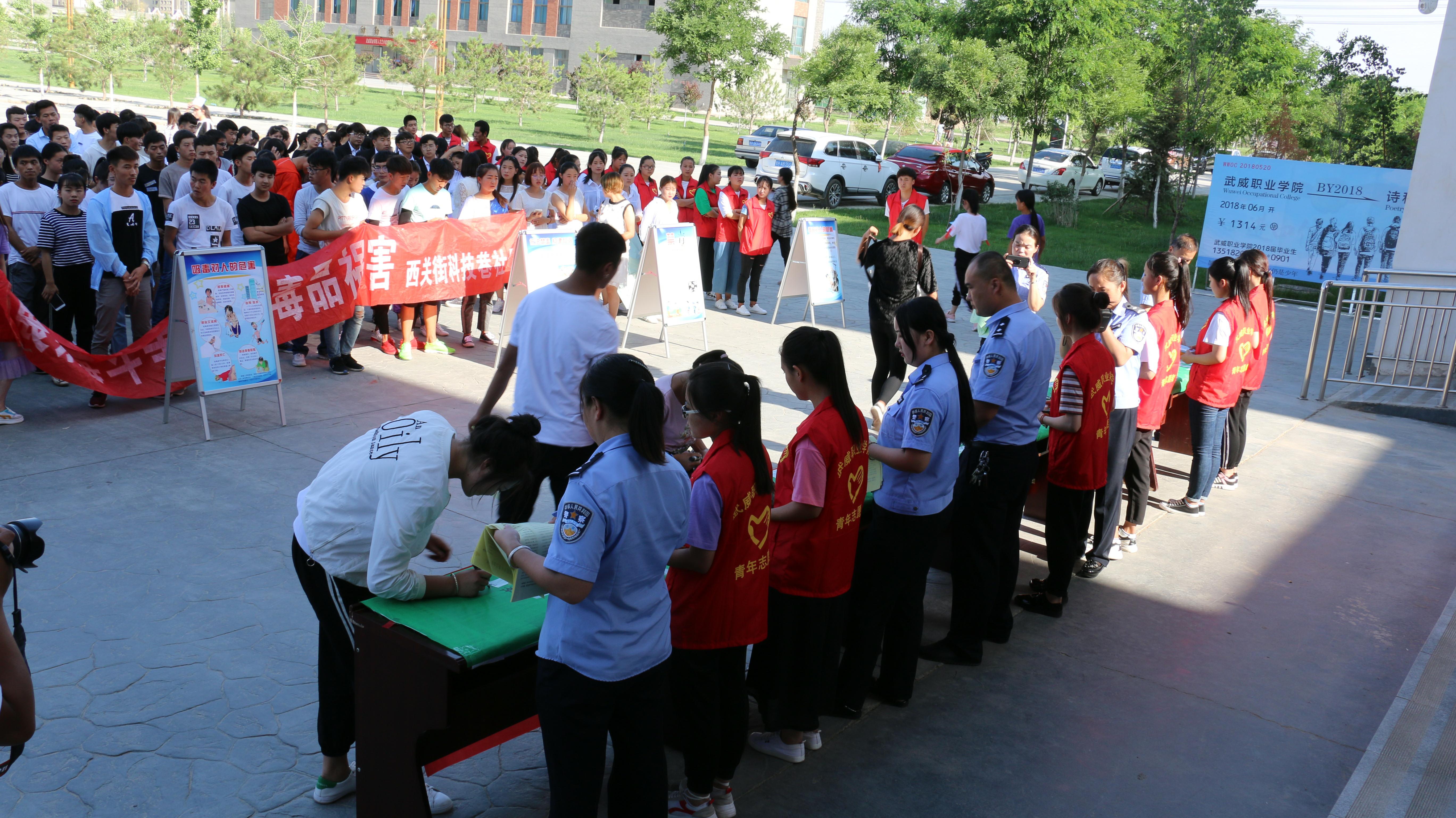 6月26日上午,學院組織50多名禁毒志愿者參加了全市“6.26”國際禁毒日大型主題宣傳活動。下午,學院相關部門聯合轄區(qū)派出所在大學生活動中心前舉行了“6.26”國際禁毒日主題宣傳活動。