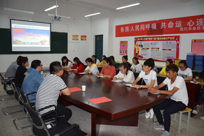 ???? 為認(rèn)真貫徹落實(shí)《學(xué)院第15個(gè)民族團(tuán)結(jié)進(jìn)步宣傳月活動(dòng)實(shí)施方案》,6月12日,現(xiàn)代農(nóng)業(yè)技術(shù)系在行樹樓教學(xué)區(qū)309會(huì)議室開展民族團(tuán)結(jié)月系列活動(dòng)。系黨總支書記晏素珍、龔建軍、蔡飛老師及全系少數(shù)民族學(xué)生參加會(huì)議,會(huì)議由系輔導(dǎo)員蔡海老師主持。