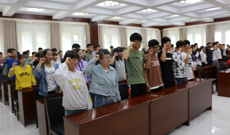 最后,2018級光伏材料班李飛虎同學作為新生代表發(fā)言。他滿懷憧憬,表達了同學們對大學生活的期待和勤奮求知的決心,并帶領(lǐng)全體新生進行了入學宣誓。