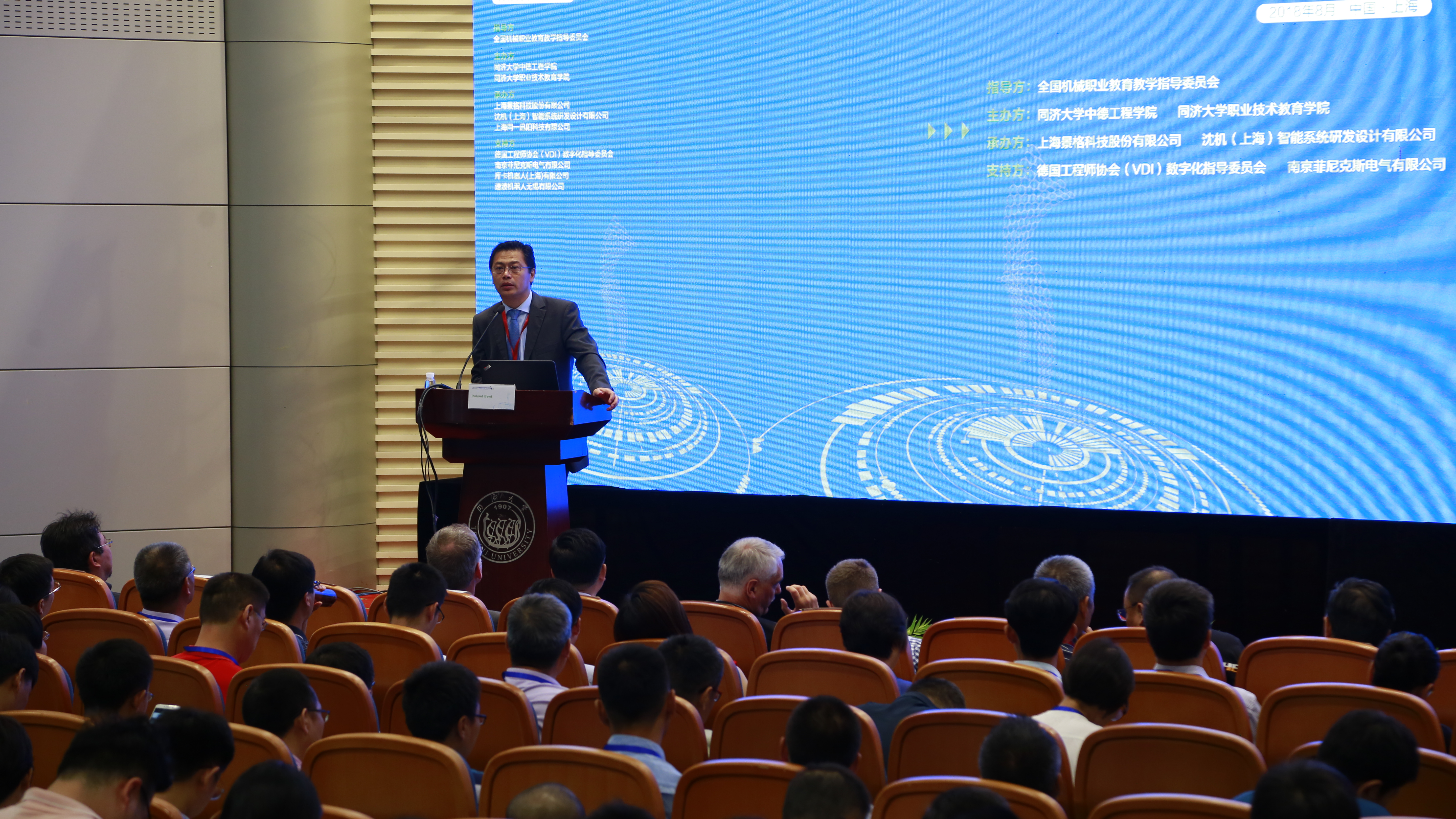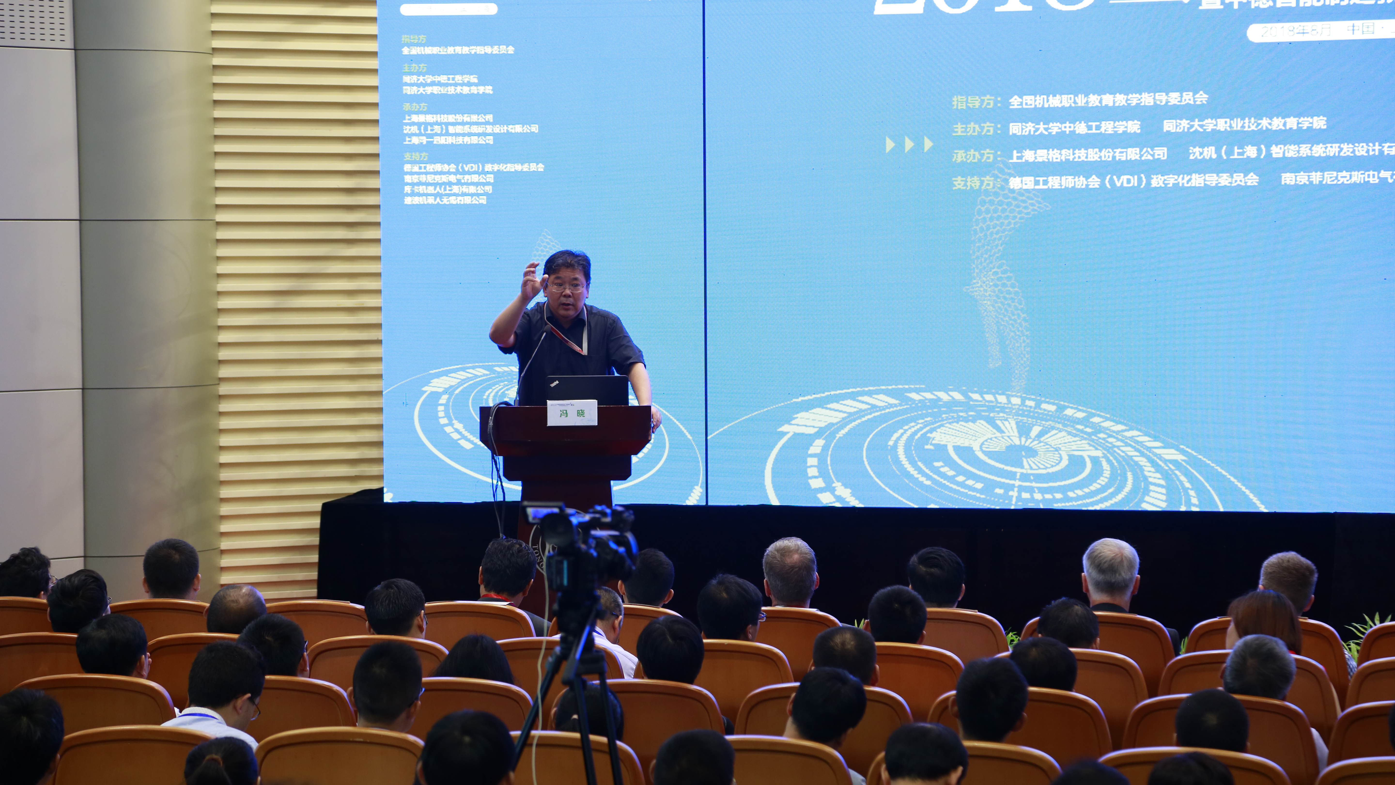 ??? 本屆論壇以全國機(jī)械職業(yè)教育教學(xué)指導(dǎo)委員會為指導(dǎo)單位,同濟(jì)大學(xué)中德工程學(xué)院和同濟(jì)大學(xué)職業(yè)技術(shù)教育學(xué)院聯(lián)合中德智能制造教育聯(lián)盟主辦,由上海景格科技股份有限公司、沈機(jī)(上海)智能系統(tǒng)研發(fā)設(shè)計(jì)有限公司、上海同一迅陽科技有限公司承辦。以及德國工程師協(xié)會(VDI)數(shù)字化指導(dǎo)委員會、南京菲尼克斯電氣有限公司、庫卡機(jī)器人(上海)有限公司、速波機(jī)器人無錫有限公司等企業(yè)為本次論壇提供了產(chǎn)教融合實(shí)踐之道的各項(xiàng)支持。本屆論壇得到國內(nèi)外200多所在智能制造相關(guān)專業(yè)領(lǐng)域優(yōu)秀的中高職、應(yīng)用型本科院校的高度關(guān)注和積極響應(yīng),近300位校領(lǐng)導(dǎo)、職教專家、知名企業(yè)代表等齊聚一堂,共謀深化智能制造產(chǎn)教融合的創(chuàng)新之道。