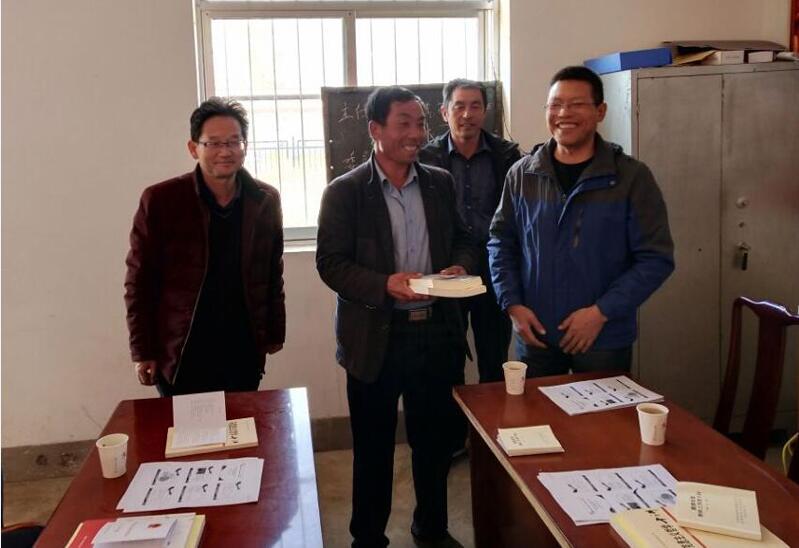 黨課結束后,趙明書記和王永緒副院長向村委會贈送了《習近平的七年知青歲月》《習近平新時代中國特色社會主義思想三十講》《怎樣做合格黨員》《馬克思主義哲學十講》《中華人民共和國憲法宣傳手冊》等書籍。