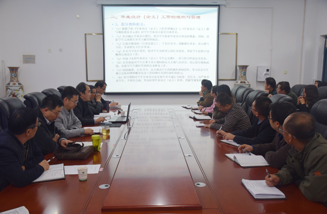 畢業(yè)設(shè)計(jì)是學(xué)生在校學(xué)習(xí)的最后一個(gè)環(huán)節(jié),也是最重要的一個(gè)環(huán)節(jié)。使學(xué)生由學(xué)校學(xué)習(xí)理論知識(shí)向社會(huì)實(shí)踐過渡轉(zhuǎn)變的一個(gè)重要環(huán)節(jié),也是對(duì)所學(xué)知識(shí)綜合應(yīng)用的一個(gè)過程。副院長姚翔飛要求全體教師認(rèn)真學(xué)習(xí)領(lǐng)會(huì),深入研究,將各位專家教授講解的內(nèi)容內(nèi)化吸納,積極承擔(dān)并高質(zhì)量的完成學(xué)院2017屆畢業(yè)生的畢業(yè)設(shè)計(jì)指導(dǎo)工作。為學(xué)院不斷提升教育教學(xué)水平,奠定堅(jiān)實(shí)的基礎(chǔ)。