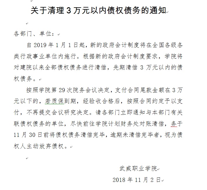 關(guān)于清理3萬元以內(nèi)債權(quán)債務(wù)的通知