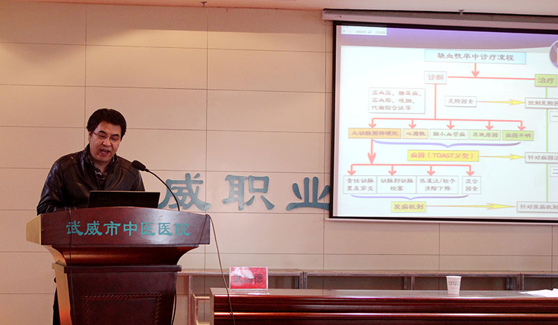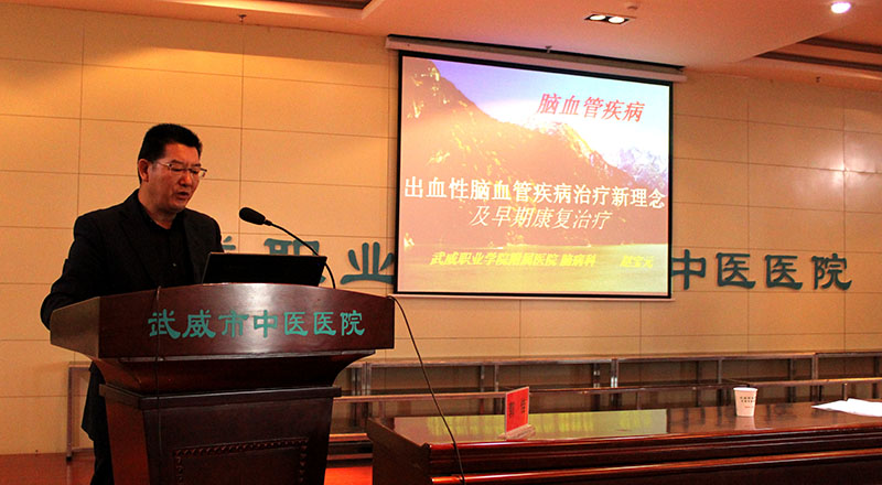 為提高醫(yī)務(wù)人員對于腦病(腦卒中)的診療和康復(fù)訓(xùn)練水平,推進(jìn)醫(yī)院腦卒中中心的籌備建設(shè),學(xué)院附屬醫(yī)院于11月11日上午,在內(nèi)科七樓會議室舉辦甘肅省中醫(yī)藥繼續(xù)醫(yī)學(xué)教育項目:腦病診療康復(fù)培訓(xùn)班。醫(yī)院副院長宗武山主持培訓(xùn)班開班儀式,副院長毛照海致辭歡迎蘭大二院2位神經(jīng)內(nèi)科專家講學(xué)指導(dǎo)工作。醫(yī)院各科室二百余名醫(yī)療骨干參加腦病診療康復(fù)培訓(xùn)班,聆聽學(xué)術(shù)報告。