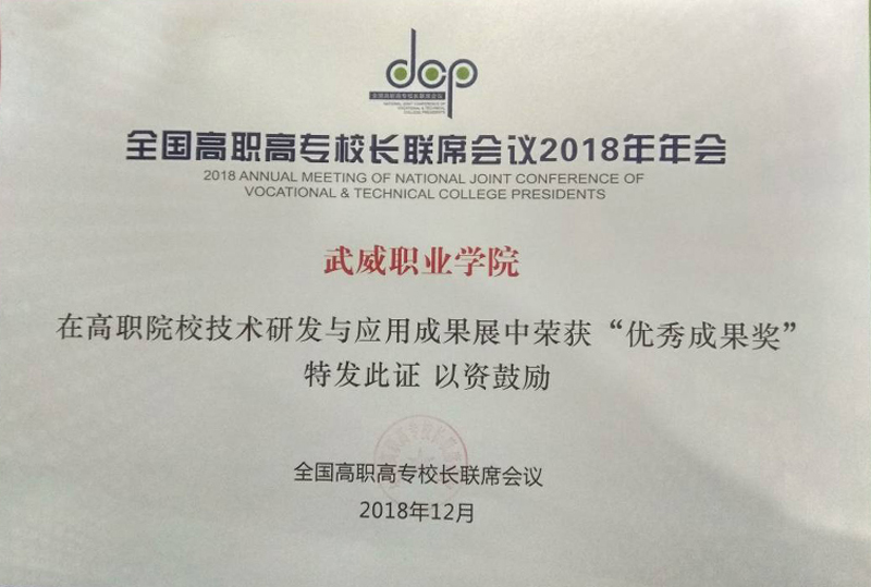 12月8日至9日,學(xué)院黨委書記、院長趙明教授、副院長翟存祥教授帶隊參加了在福建福州召開的全國高職高專校長聯(lián)席會議2018年年會。學(xué)院自主研發(fā)的“光伏組件智能清潔裝置”榮獲高職院校技術(shù)研發(fā)與應(yīng)用成果 “優(yōu)秀成果獎”(全國僅36所高職院校獲此殊榮,甘肅省僅2所),“學(xué)院與中科院先進(jìn)核能創(chuàng)新研究院聯(lián)合辦學(xué)創(chuàng)新發(fā)展”案例入選教育成果案例展。