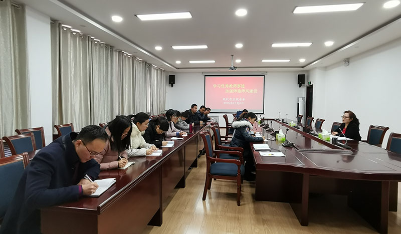 全體專兼職教師在系黨總支書記晏素珍同志的帶領(lǐng)下,共同學(xué)習(xí)了“全國(guó)優(yōu)秀教師”李德威同志的先進(jìn)事跡、《新時(shí)代高校教師職業(yè)行為十項(xiàng)準(zhǔn)則》和《高校教師師德失范行為處理的指導(dǎo)意見》。