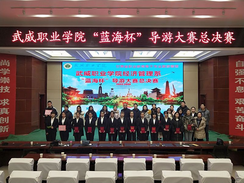 2018年12月28日,武威職業(yè)學(xué)院經(jīng)濟管理系“藍海杯“導(dǎo)游大賽決賽在大學(xué)生活動中心“菁英廳”圓滿落幕。此次活動是甘肅省職業(yè)教育骨干專業(yè)旅游管理專業(yè)建設(shè)活動之一。