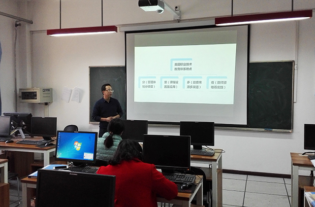 匯報(bào)會(huì)上以《美國(guó)社區(qū)學(xué)院的那些事兒》為開(kāi)場(chǎng),從培訓(xùn)目的、培訓(xùn)背景、考察紀(jì)要、先進(jìn)經(jīng)驗(yàn)四個(gè)方面介紹了美國(guó)大學(xué)教育的先進(jìn)理念等方面做了介紹;重點(diǎn)介紹了考察學(xué)習(xí)加州圣伯納迪諾社區(qū)學(xué)院、希勒斯學(xué)院、莫圣安東尼奧學(xué)院、洛杉磯商業(yè)技術(shù)學(xué)院、洛杉磯港高大學(xué)5所大學(xué)的情況和感受。張偉東老師對(duì)以上各學(xué)校的基本情況、辦學(xué)條件、專業(yè)設(shè)置等做了詳細(xì)的介紹,王鵬元對(duì)美國(guó)式大學(xué)教育的人才培養(yǎng)模式、學(xué)生狀況、運(yùn)行模式、學(xué)歷層次做了重點(diǎn)講解。同時(shí)二位老師通過(guò)考察學(xué)習(xí),提出我校的師資和實(shí)驗(yàn)實(shí)訓(xùn)條件建設(shè)、辦學(xué)模式等現(xiàn)狀和美國(guó)教育體系進(jìn)行詳細(xì)的對(duì)比,為我系以后的發(fā)展提供了參考。