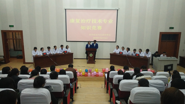 為加強(qiáng)學(xué)風(fēng)建設(shè),鞏固特色專業(yè)建設(shè)成果,增強(qiáng)同學(xué)們對(duì)專業(yè)知識(shí)的了解,培養(yǎng)同學(xué)們的思維能力、創(chuàng)新能力,提高學(xué)生的競爭力,12月5日晚,醫(yī)學(xué)技術(shù)與信息管理系在尚德樓正德廳舉行康復(fù)治療技術(shù)專業(yè)知識(shí)競賽。學(xué)院基建處處長周興全,系主任楊如松,學(xué)生工作負(fù)責(zé)人魏曙光,院團(tuán)委馬琪老師,系政治輔導(dǎo)員,康復(fù)治療技術(shù)專業(yè)教研室主任、任課教師及全體班主任、學(xué)生代表參加本次活動(dòng)。