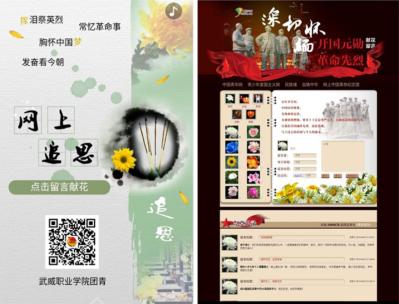 院團委在“武威職業(yè)學院團青”微信公眾平臺開設清明網上祭英烈專欄,共有3968名同學參與了線上活動。同學們帶著誠摯的敬意向烈士們鞠躬、獻花,并在留言區(qū)發(fā)表祭掃寄語,以此緬懷先烈的豐功偉績,追憶烈士之德。