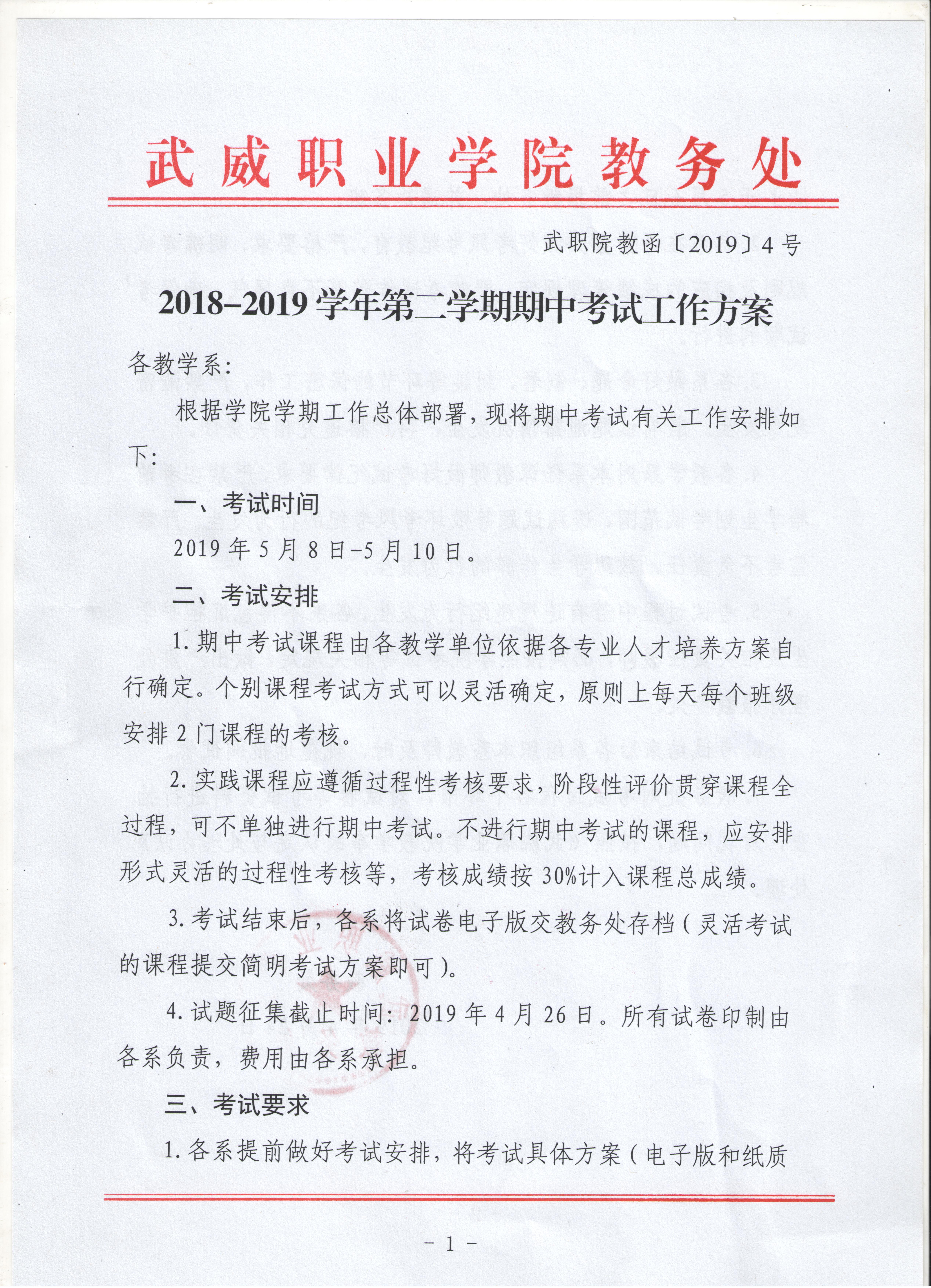 汽車工程系2018-2019學(xué)年第二學(xué)期期中考試工作方案