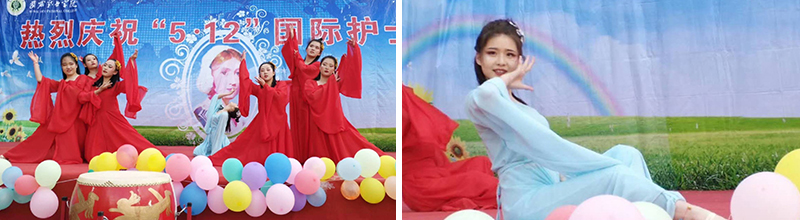 為展示技能大賽獲獎選手風采,參加2019年甘肅省護理技能大賽的獲獎學生代表進行了“心肺復蘇技術(shù)”表演,學院第六屆護理技能大賽獲獎選手代表進行了“右踝關(guān)節(jié)扭傷包扎技術(shù)”表演。之后,進行的文藝演出,為“5.12”慶祝護士節(jié)畫上了圓滿的句號。