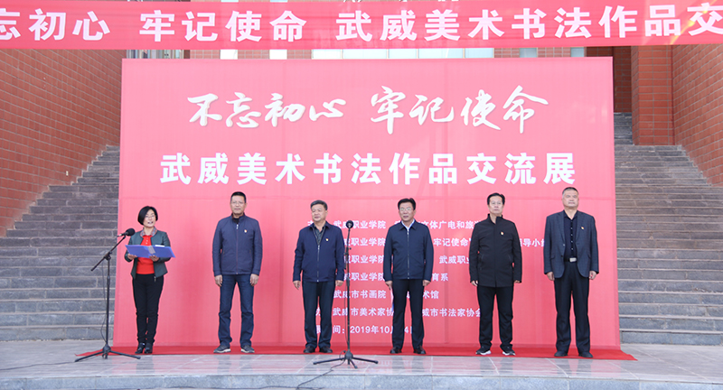 為深入開展“不忘初心牢記使命”主題教育,10月14日下午,武威職業(yè)學(xué)院、武威市文體廣電和旅游局舉辦的“不忘初心、牢記使命”武威美術(shù)書法作品交流展在學(xué)院大學(xué)生活動中心前廣場隆重開幕。
