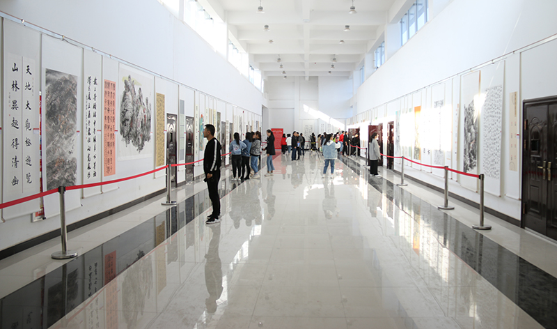 齊澤山在致辭中說,武威職業(yè)學(xué)院是國家骨干高等職業(yè)院校,專業(yè)門類齊全、師資力量雄厚、教學(xué)科研成果豐碩,近年來,學(xué)院培養(yǎng)了一大批技能過硬、素質(zhì)優(yōu)良的專業(yè)人才,為武威經(jīng)濟社會發(fā)展做出了卓越的貢獻,贏得了社會各界的廣泛好評。此次交流展是武威市書畫院、武威美術(shù)館首次與武威職業(yè)學(xué)院開展的一次院校間藝術(shù)交流活動,同時也是一次送書畫進高?;顒樱瑸樵盒kp方提供了一個互相交流、互相學(xué)習(xí)的機會和平臺,為高校營造了更加良好的人文藝術(shù)氛圍。提升了武威職業(yè)學(xué)院主題教育的質(zhì)量和效果,對提高師生的藝術(shù)修養(yǎng)、審美水平,強化高校文化育人和人文校園建設(shè)、傳承弘揚優(yōu)秀傳統(tǒng)文化起到積極的推動作用。