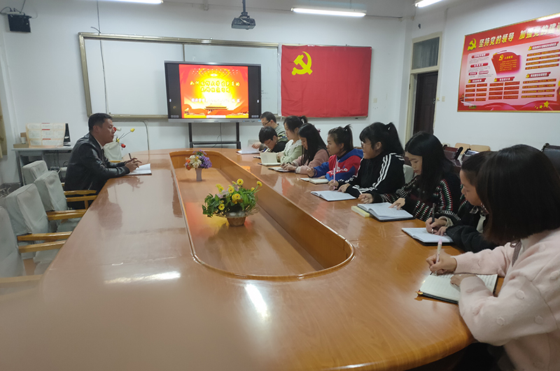 學(xué)生支部書記姚盈老師帶領(lǐng)全體黨員學(xué)生重溫學(xué)習(xí)習(xí)總書記在黨的十九大報(bào)告中提出的“不忘初心,牢記使命”,用黨的理論武裝頭腦,加強(qiáng)青年學(xué)生的理論素養(yǎng)。