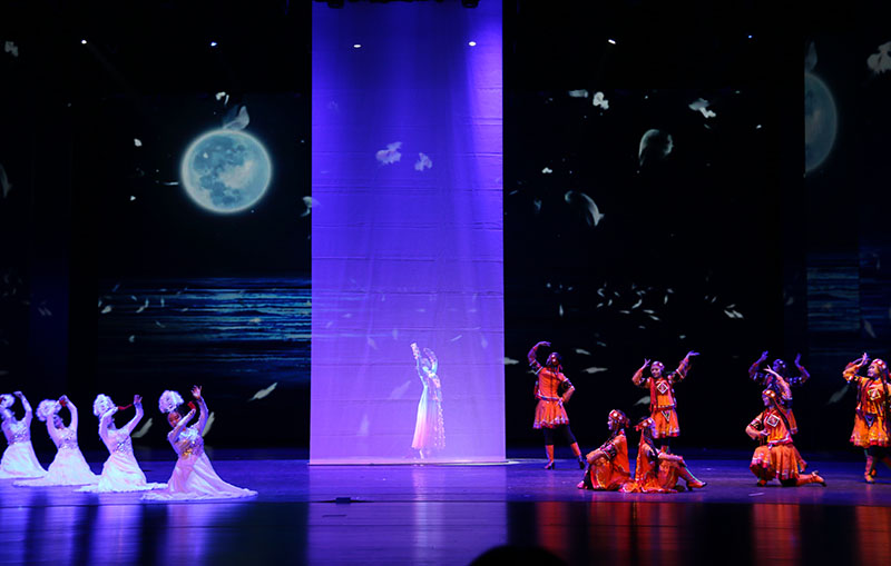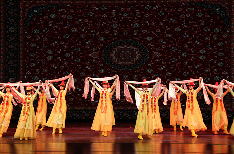 大型歌舞劇《裕固風(fēng)華》是河西學(xué)院師生歷經(jīng)三年精心打造的首部原創(chuàng)教學(xué)劇目,是教育部、文化和旅游部、財政部高雅藝術(shù)進(jìn)校園活動省級巡演劇目,是省委宣傳部和省文旅廳“春綠隴原”展演劇目,是甘肅省學(xué)校美育改革與發(fā)展重大項目、甘肅省高校美育教育舞臺示范精品。全劇由《序》《東遷》《家園》《傳說》《婚禮》五個篇章組成,以裕固族傳統(tǒng)民歌、舞蹈、民俗為載體進(jìn)行創(chuàng)作和改編,以情景歌舞的形式表現(xiàn)裕固族的歷史變遷和民俗文化,以講述、吟誦、歌舞的手法,再現(xiàn)了裕固族的發(fā)展歷史和多姿多彩的獨特文化,以高品位的藝術(shù)水準(zhǔn)弘揚、展現(xiàn)了中華民族傳統(tǒng)文化的優(yōu)良基因和時代活力。