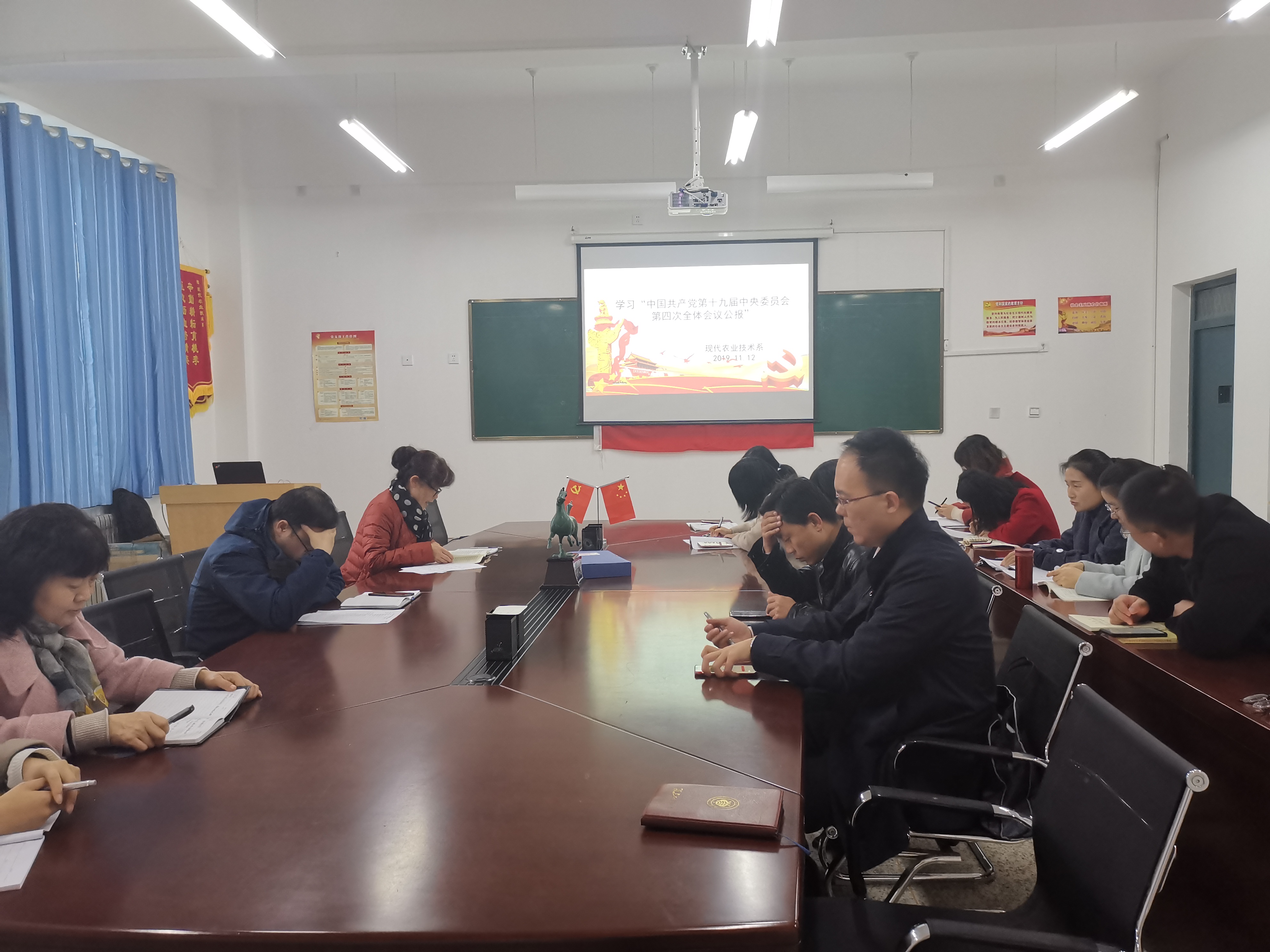11月12日下午,現代農業(yè)技術系召開全體教師會議,深入學習了黨的十九屆四中全會精神;11月15日下午我系黨總支全體黨員就學習黨的十九屆四中全會精神開展研討會。