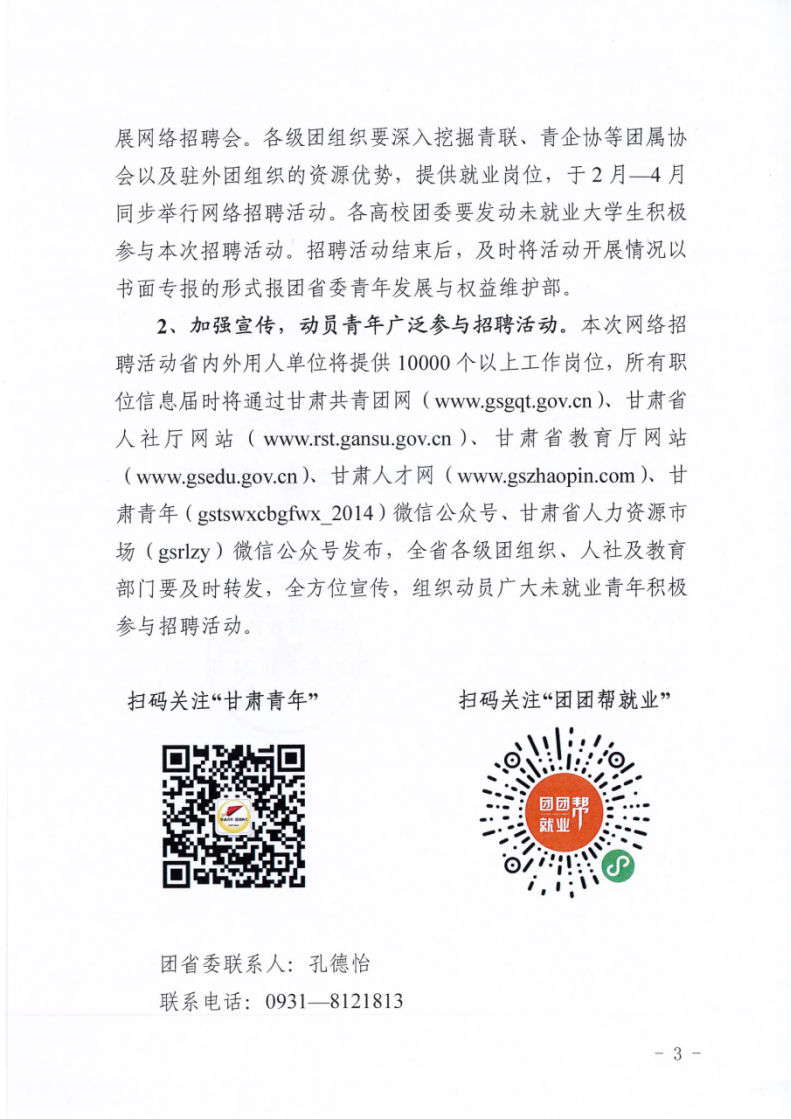 關(guān)于組織開展甘肅共青團(tuán)助力脫貧攻堅(jiān)第三屆青春招聘會(網(wǎng)絡(luò))活動的通知