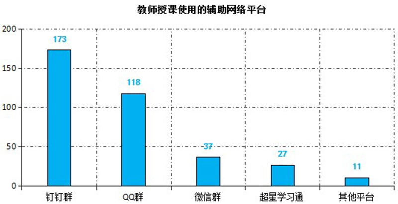 截止3月6日,教師使用武威職業(yè)學(xué)院在線教學(xué)平臺建設(shè)在線課程226門,使用超星學(xué)習(xí)通開展教學(xué)317次,釘釘課堂30次,智慧職教23次,中國大學(xué)MOOC15次,人衛(wèi)慕課13次,其他平臺9次。任課教師還選用釘釘群、QQ群或微信群等作為課程輔助交流平臺實(shí)施教學(xué)組織與管理。在線教學(xué)過程中,除開始時(shí)部分時(shí)段因同時(shí)在線人數(shù)過多導(dǎo)致網(wǎng)絡(luò)波動(dòng)外,其他時(shí)間教學(xué)平臺均能穩(wěn)定運(yùn)行,較好的保障了在線教學(xué)的順利實(shí)施。