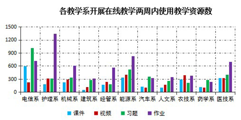 開展在線教學(xué)兩周以來,通過學(xué)院在線教學(xué)平臺管理后臺數(shù)據(jù)整理分析,教師為在線授課準(zhǔn)備了充足的教學(xué)資源。兩周內(nèi),學(xué)院教學(xué)平臺新上傳教學(xué)課件2527個(gè),教學(xué)視頻2701個(gè);新設(shè)置課堂練習(xí)題4176道,發(fā)布課后作業(yè)題6375道,豐富的資源有力支持在線教學(xué)順利進(jìn)行。