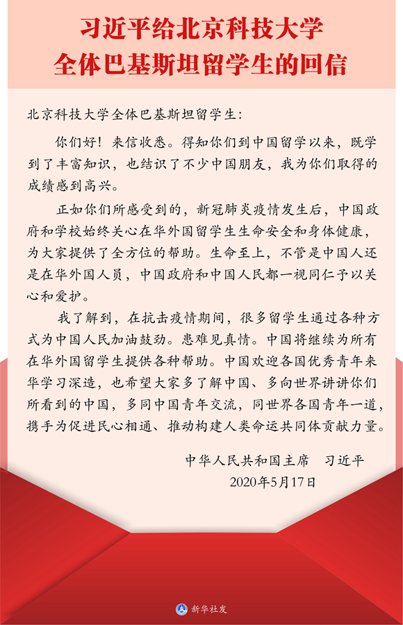 專題會后,國際合作與交流處工作人員組織留學(xué)生召開學(xué)習(xí)貫徹習(xí)近平總書記給北京科技大學(xué)全體巴基斯坦留學(xué)生回信精神專題視頻座談會。會議要求,全體留學(xué)生要認(rèn)真學(xué)習(xí)回信,要深刻領(lǐng)會回信的重大意義,要深刻領(lǐng)會回信的真情實(shí)感。留學(xué)生們一致對學(xué)院在新冠肺炎疫情暴發(fā)后給予的關(guān)心表示感謝,表示學(xué)有所成后要投身“一帶一路”建設(shè)、為增進(jìn)中外友誼做出貢獻(xiàn)。