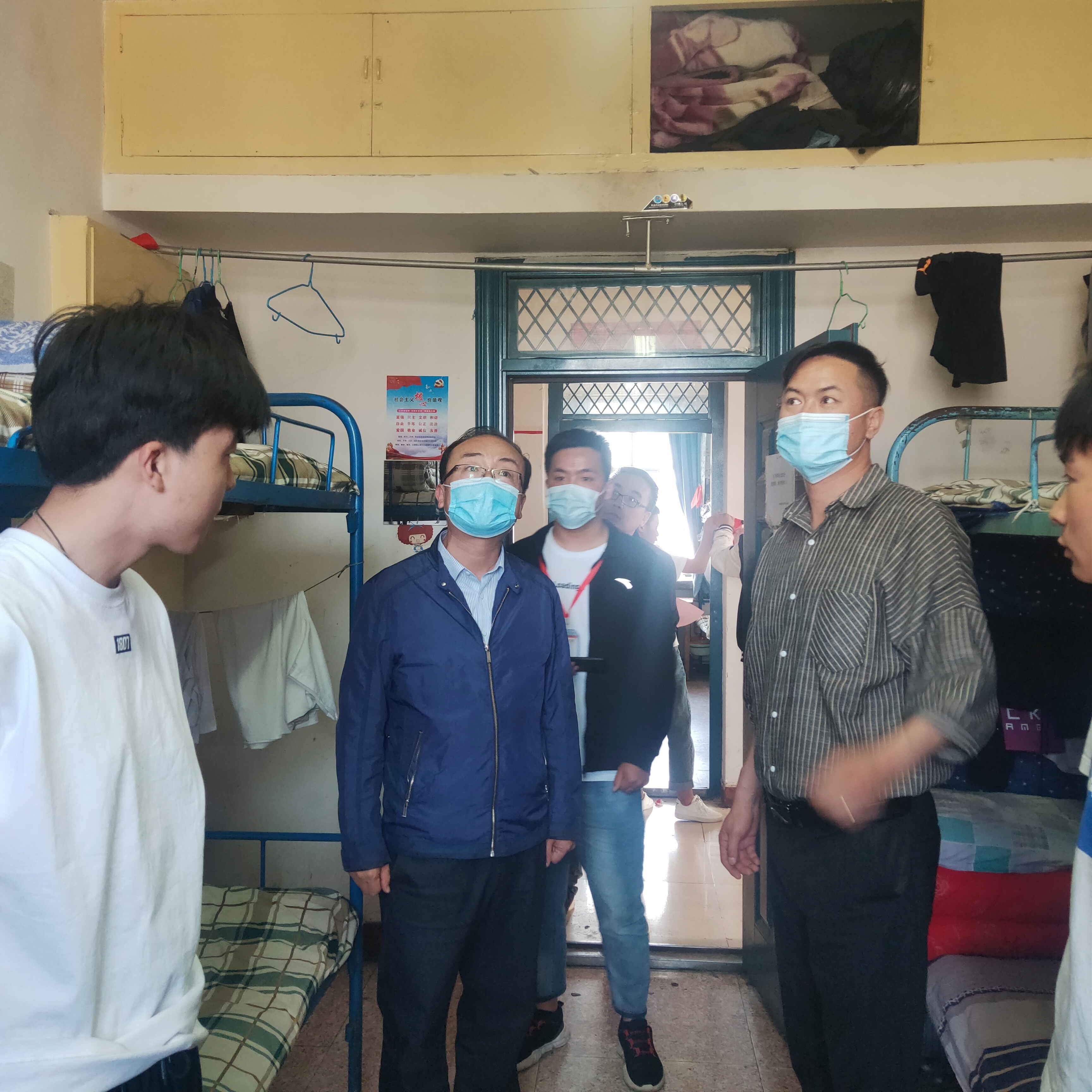 檢查結(jié)束后,針對此次檢查中發(fā)現(xiàn)的問題,黃文源要求,現(xiàn)在氣溫升高,教室、宿舍要多開窗通風,疫情防控工作不能松懈,要教育學生養(yǎng)成良好衛(wèi)生習慣,做好宿舍和環(huán)境衛(wèi)生,對檢查中發(fā)現(xiàn)的安全隱患要及時整改。班主任要經(jīng)常深入宿舍,加強宿舍檢查力度,及時召開安全主題班會,加強學生安全責任意識,認真做好“三區(qū)”衛(wèi)生。