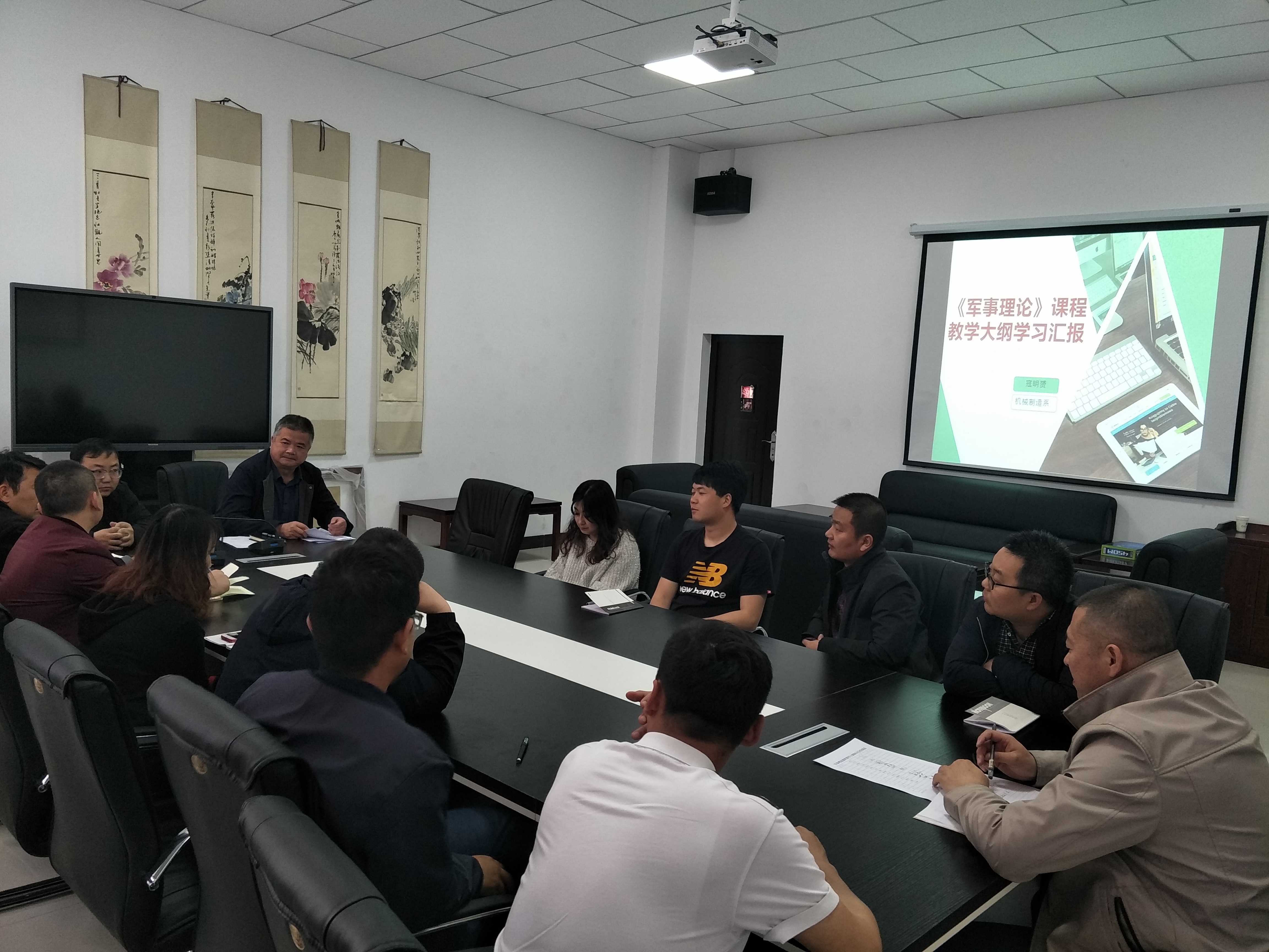 在會(huì)上,王守云傳達(dá)了甘肅省教育廳、甘肅省軍區(qū)戰(zhàn)備建設(shè)局轉(zhuǎn)發(fā)教育部、中央軍委國防動(dòng)員部印發(fā)《普通高等學(xué)校軍事課教學(xué)大綱》的通知精神??苊髭S老師圍繞新《大綱》制定的背景特點(diǎn)、主要內(nèi)容、亟需把握的主要問題等,進(jìn)行報(bào)告交流。