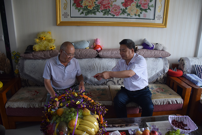 在老黨員鄭希禹家中,黨委書(shū)記、院長(zhǎng)趙明關(guān)切地詢(xún)問(wèn)了他的日常生活、身體狀況、子女工作等情況。感謝他為黨的事業(yè)和學(xué)院的發(fā)展做出的貢獻(xiàn),并叮囑他要照顧好自己的生活,祝愿他身體健康、生活愉快、家庭幸福。
