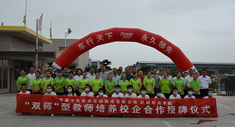 2020年7月9日上午9時,武威職業(yè)學院和甘肅牛電森祥車輛制造有限公司校企合作授牌儀式在牛電森祥廠區(qū)舉行。武威職業(yè)學院黨委副書記翟存祥同志,武威職業(yè)學院黨委委員、副院長張開禮、王守云同志,涼州區(qū)工業(yè)園區(qū)黨工委書記張鑫以及區(qū)科技局、工信局分管領(lǐng)導出席了授牌儀式。