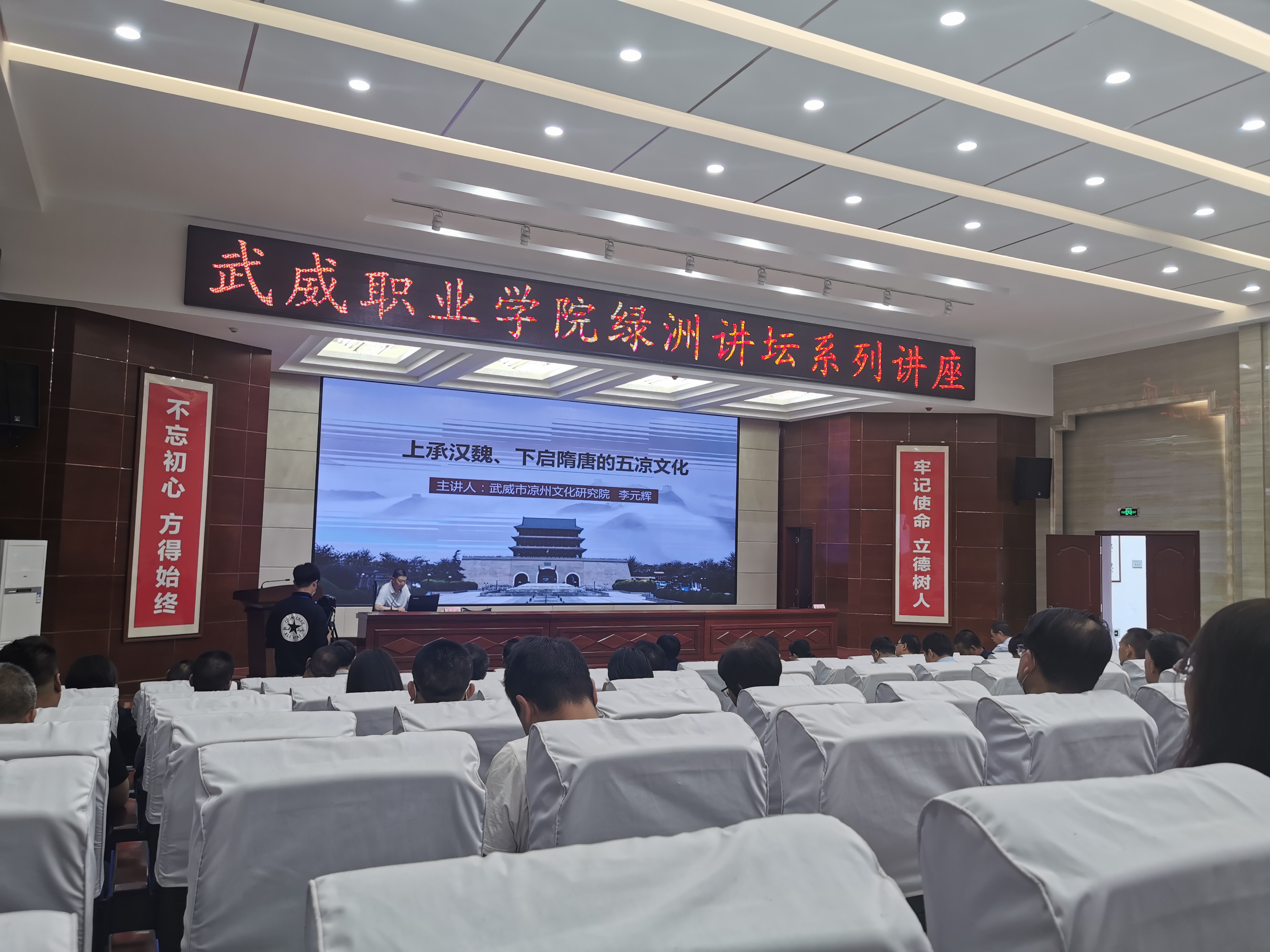 李元輝研究員圍繞“走進武威,觸摸五涼;五涼興亡,百年滄桑;承前啟后,繼絕扶衰;文脈綿延,繼往開來”等方面講述了涼州文化的獨特稟賦、鮮明特征和豐富內(nèi)涵,以及對中國歷史文化的深遠影響、對中原傳統(tǒng)文化的繼承和創(chuàng)新,為學(xué)院師生分享了一場期待已久的文化盛宴和精神大餐。