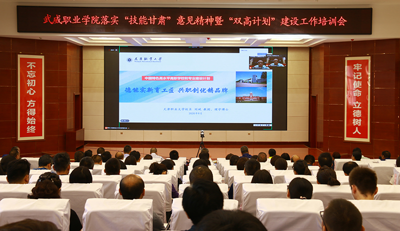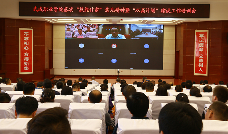 9月4日,學(xué)院在大學(xué)生活動中心菁英廳召開了武威職業(yè)學(xué)院落實“技能甘肅”意見精神暨“雙高計劃”建設(shè)培訓(xùn)會,黨委書記、院長趙明主持會議并講話,黨委副書記翟存祥,黨委委員、副院長王永緒、田迎春、何毅,黨委委員、紀委書記、監(jiān)察專員陳曉煜,黨委委員、副院長王守云出席會議。全體中層干部、專業(yè)帶頭人、課程負責人和教師代表共計220人參加了會議。
