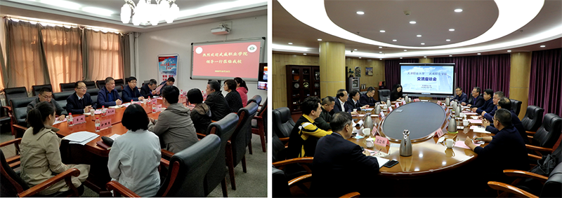 考察組一行分別與天津醫(yī)學高等??茖W校、天津職業(yè)大學進行了深入交流座談。天津醫(yī)高專是國家雙高校中唯一一所衛(wèi)生類學校,在座談會上,醫(yī)高專為學院醫(yī)藥衛(wèi)生類專業(yè)群建設(shè)提出了指導意見,介紹了醫(yī)高?!?.5+1.5”學制安排促就業(yè)、教學系黨委行政雙組長抓就業(yè)、就業(yè)工作經(jīng)費動態(tài)調(diào)整引領(lǐng)就業(yè)的工作機制,并就下一步共同培養(yǎng)師資、互派青年骨干教師交流學習達成共識。天津職業(yè)大學是《天津—甘肅職業(yè)教育協(xié)作實施方案》合作院校,在天津職大座談會上,兩校圍繞專業(yè)群組群、產(chǎn)業(yè)學院組建模式、教學模式、探索產(chǎn)業(yè)學院建設(shè)、混合所有制二級學院建設(shè)、就業(yè)工作“一對一”模式、學生管理經(jīng)驗和成果進行了分享與交流。劉斌校長出席并主持會議,對學院的雙高建設(shè)給予了特別關(guān)心與指導。他希望,雙方作為兄弟院校,要進一步加強交流合作,努力為推動東西協(xié)作和武威職業(yè)教育高質(zhì)量發(fā)展做出新的更大的貢獻。