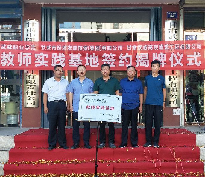 為使建筑專業(yè)的教學與建筑工程實踐緊密結合起來,實現(xiàn)企業(yè)、學院優(yōu)勢互補共同發(fā)展,8月9日,學院聯(lián)合武威市經(jīng)濟發(fā)展(集團)有限公司、甘肅武威高壩建筑工程有限公司,在甘肅武威高壩建筑工程有限公司大樓前隆重舉行武威職業(yè)學院教師實踐基地簽約揭牌儀式。出席簽約揭牌儀式的領導同志有:學院黨委書記、院長趙明同志,基建處負責人賈龍同志,建筑工程系副主任蔡濟眾同志,黨建負責人孫潤元同志;武威市經(jīng)濟發(fā)展(集團)有限公司董事長崔國斌、副董事長董英,甘肅武威高壩建筑工程有限公司總經(jīng)理周勝年。