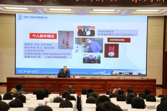 報告會上,胡建民大師首先向師生介紹了蘭鈾公司的光輝歷程、歷史貢獻、公司概況,然后圍繞個人成長經(jīng)歷、學(xué)習(xí)交流工作培訓(xùn)、工作室工作方向三個方面深入淺出地講述了自己的工匠之路,為同學(xué)們在專業(yè)技能、就業(yè)指導(dǎo)、職業(yè)素養(yǎng)等方面分享了自己的生活、工作經(jīng)驗,師生們獲益良多。