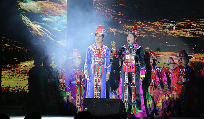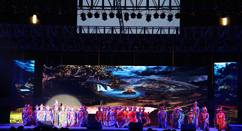 原創(chuàng)合唱音詩《薩娜瑪珂》取材于甘肅省獨有的少數(shù)民族裕固族的同名史詩,以裕固族民族女英雄為人物形象,以裕固族民族音樂為音樂基調(diào),以感人至深的故事情節(jié)為創(chuàng)意線索,全劇采用四部合唱、女高音領(lǐng)唱、男中音領(lǐng)唱以及朗誦等富有獨特表現(xiàn)力的藝術(shù)形式,生動再現(xiàn)了薩娜瑪珂的壯美人生和傳奇故事。原生態(tài)的民族音樂、如詩如畫的舞美、濃郁的民族風(fēng)情,深深地感染了現(xiàn)場師生,贏得了陣陣熱烈的掌聲。