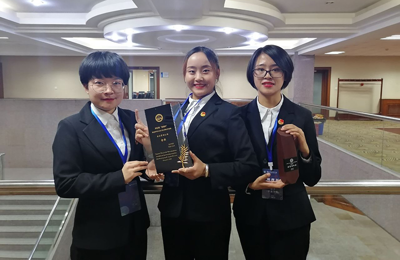 在上午進(jìn)行的初賽中,非法學(xué)組共有13個(gè)學(xué)校參加,前八名進(jìn)入決賽。我院三位選手在與兄弟學(xué)校的激烈角逐下,脫穎而出,以小組賽第二名、初賽第四名的成績輕松進(jìn)入決賽。下午的決賽中,面對(duì)更強(qiáng)大的對(duì)手,面對(duì)評(píng)委老師,三位選手始終面帶笑容、自信滿滿、密切配合,憑自己的努力、實(shí)力,發(fā)揮出她們的最好水平,個(gè)人答題毫無破綻、搶答過程頻頻得手、個(gè)人論述聲情并茂,獲得了評(píng)委的高度贊賞。經(jīng)過激烈的比拼,我院代表隊(duì)一路披荊斬棘,過關(guān)斬將,最終獲得非法學(xué)組金獎(jiǎng)(第一名),學(xué)院獲優(yōu)秀組織獎(jiǎng),羅茜獲得個(gè)人優(yōu)秀選手獎(jiǎng)。