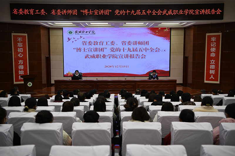 學院舉辦“省委教育工委、省委講師團‘博士宣講團’黨的十九屆五中全會武威職業(yè)學院宣講報告會”