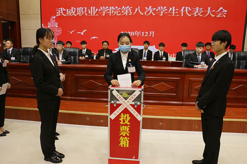 大會(huì)審議通過(guò)了《武威職業(yè)學(xué)院第七屆學(xué)生會(huì)工作報(bào)告》《武威職業(yè)學(xué)院學(xué)生會(huì)章程》,肯定了過(guò)去一年工作取得的成績(jī),提出今后一年改革發(fā)展的目標(biāo)和任務(wù)。大會(huì)本著“公平、公正、公開(kāi)”的原則,以無(wú)記名投票的形式,通過(guò)民主選舉產(chǎn)生了第八屆學(xué)生會(huì)主席團(tuán)。
