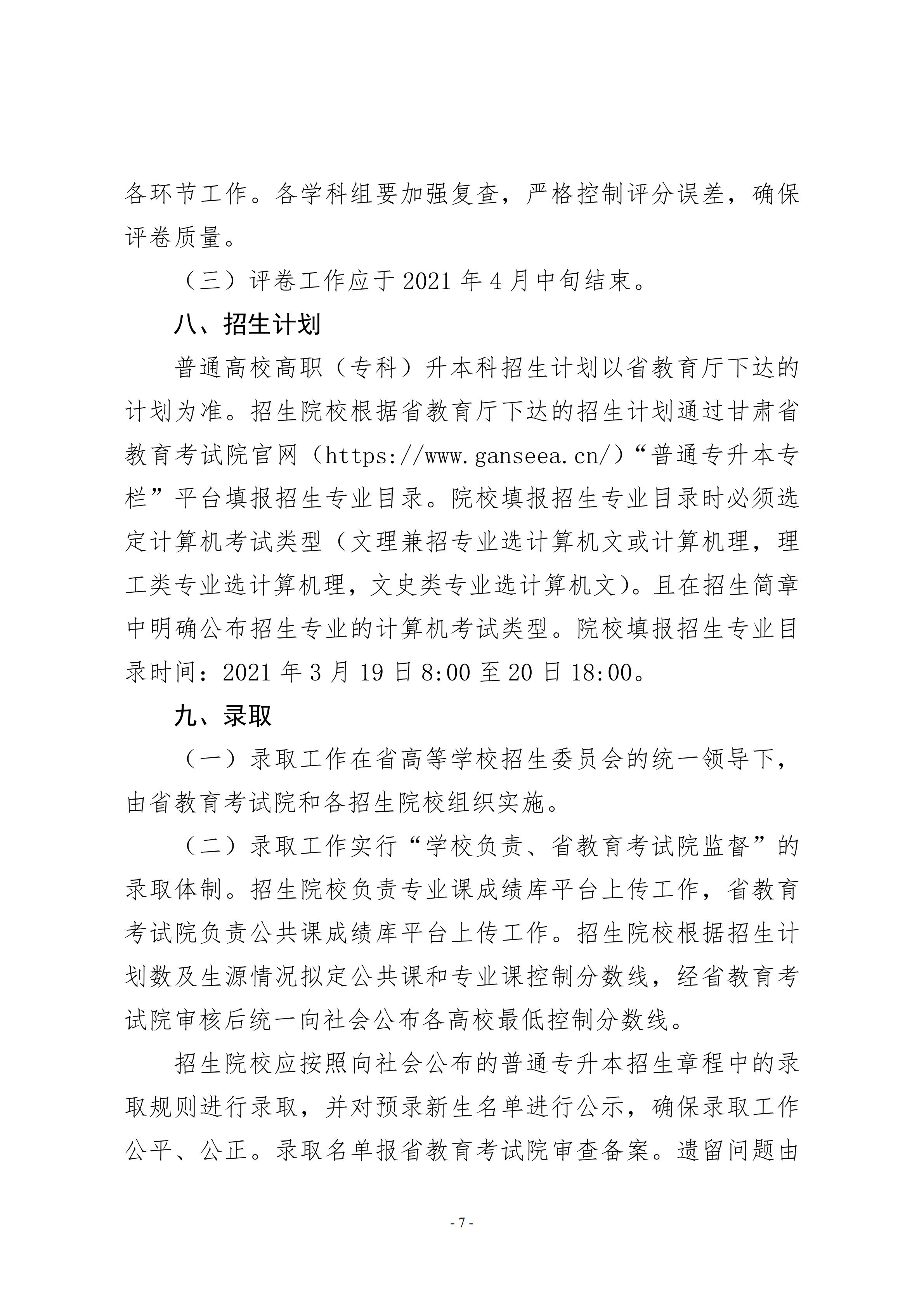 2021年甘肅省普通高校高職(??疲┥究瓶荚囌猩ぷ鞣桨?/h1>