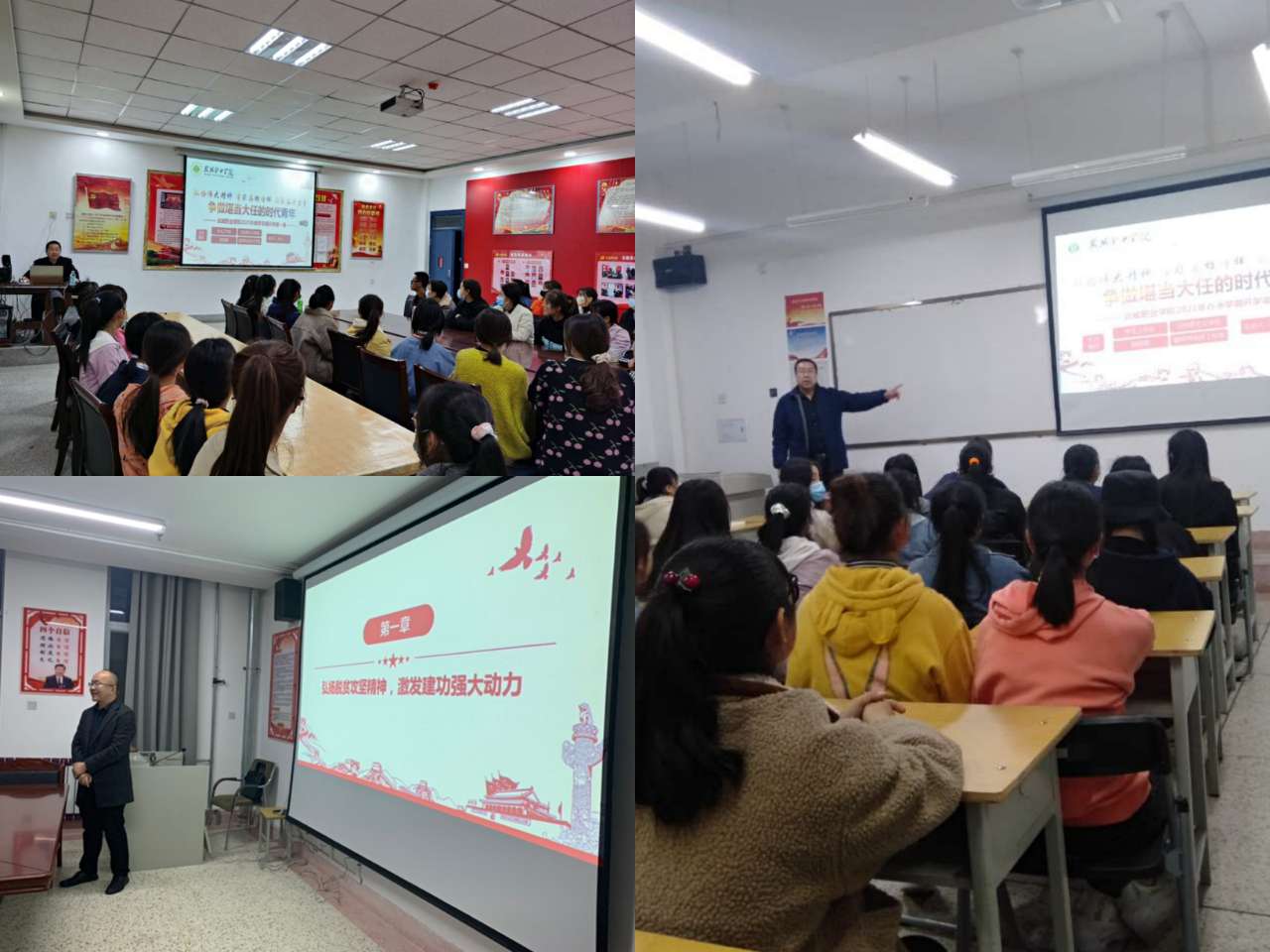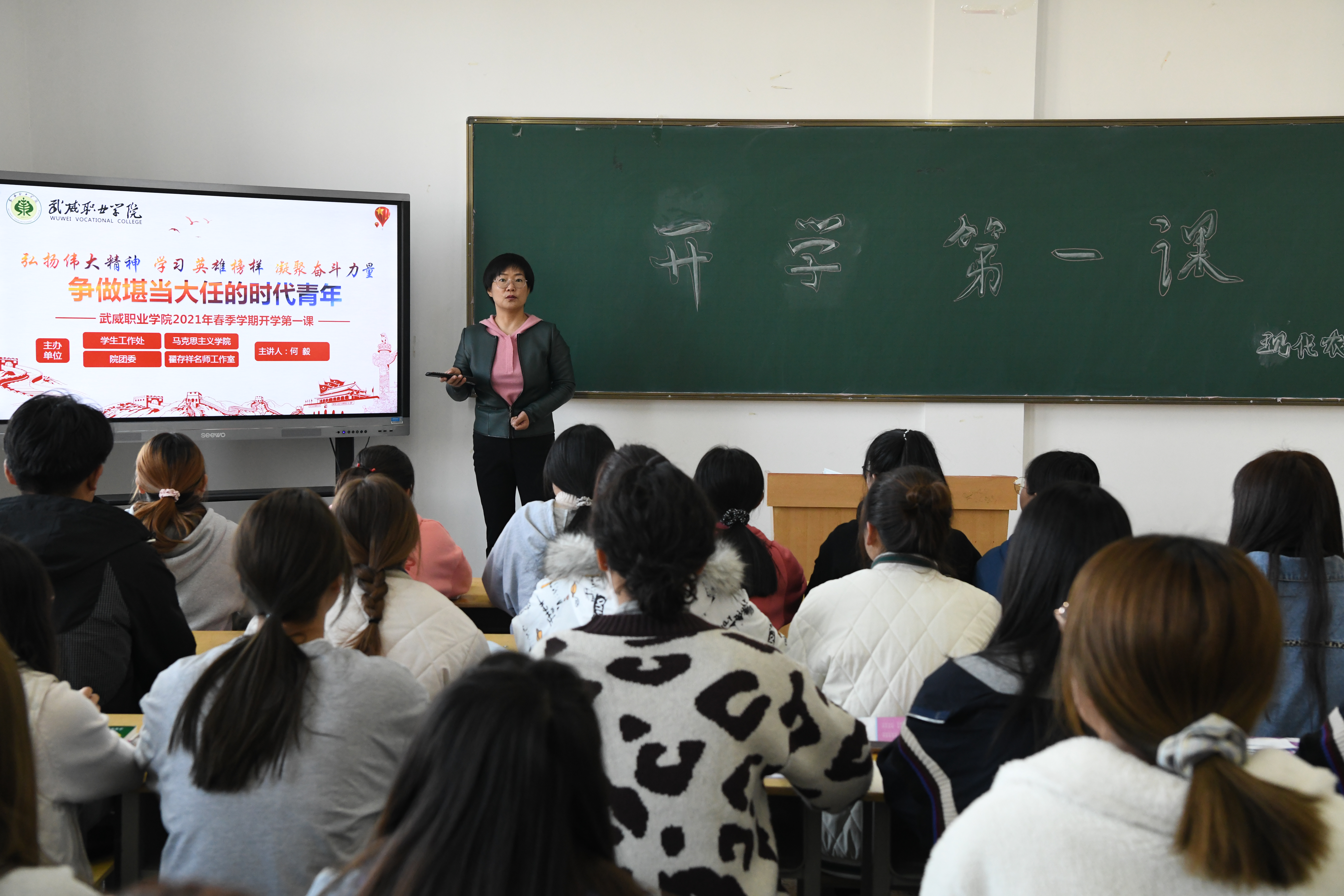 “開學第一課”由學生工作處、院團委、馬克思主義學院、翟存祥名師工作室牽頭組織,采用統(tǒng)一備課、統(tǒng)一講稿、統(tǒng)一內(nèi)容,由學院領(lǐng)導、思政課教師、工作室成員、全體班主任統(tǒng)一時間、統(tǒng)一講授,對全院8100多名學生進行全全覆蓋開展“開學第一課”教育。