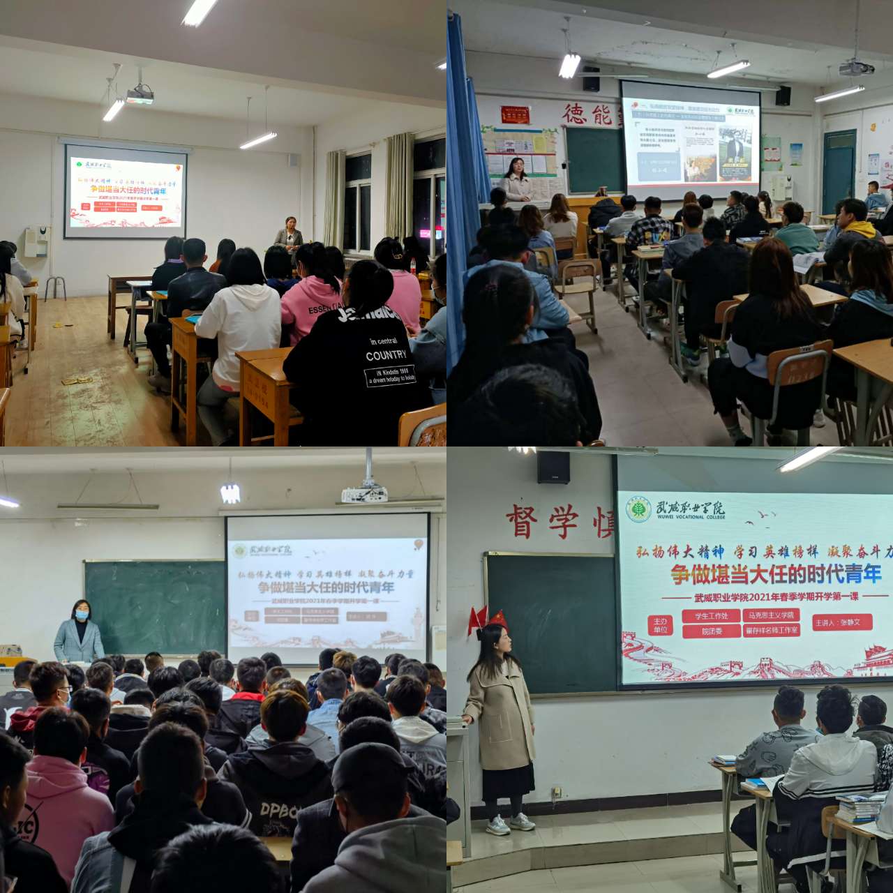 授課圍繞“弘揚脫貧攻堅精神,激發(fā)建功強大動力”、“學習戍邊英雄事跡,匯聚強國磅礴力量”、“遵守國家規(guī)定要求,筑牢疫情防控防線”和“牢固樹立安全意識,切實維護校園安全”四個方面展開,授課教師和同學們一起全面分享了脫貧攻堅取得的偉大成就和衛(wèi)國戍邊英雄的感人事跡,并對常態(tài)化疫情防控工作和學校安全工作做了細致講解。旨在激勵廣大學生弘揚脫貧攻堅精神,厚植愛國戰(zhàn)斗情懷,并使同學們更好地適應(yīng)學校學習生活,遵守常態(tài)化疫情防控制度和學院各項規(guī)章制度,以保證新學期教育教學工作平穩(wěn)有序開展,保證全院長期安全穩(wěn)定。